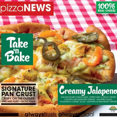 The freshest ingredients and unique preperation techniques weCreamy Jalapeno frozen pizza is made with our signature tomatoe base, topped with a mildly spiced chicken. We then add our signature creamy jalapeno sauce, some delicately sliced mozzarella cheese, perfectly sliced jalapeno & completed with sweetheart peppers. Ready for your enjoyment lock-in the flavours.
